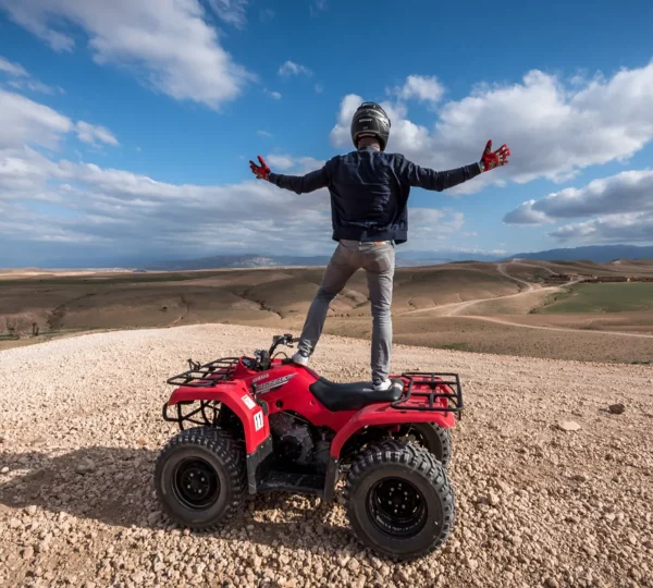 Rev up your Marrakech visit with the Agafay Desert Quad Riding Adventure 1H — a thrilling 1-hour off-road journey through the rugged stone desert of Agafay, a stunning alternative to the Sahara located just a short drive from the city. Whether you’re craving adventure or a unique way to see Morocco’s natural beauty, this guided quad biking tour delivers excitement, freedom, and unforgettable views.