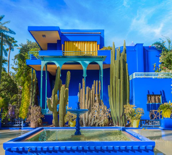 A: The color is known as “Majorelle Blue” — a custom shade created by Jacques Majorelle to contrast with the greenery and sky. It has since become a symbol of Marrakech.